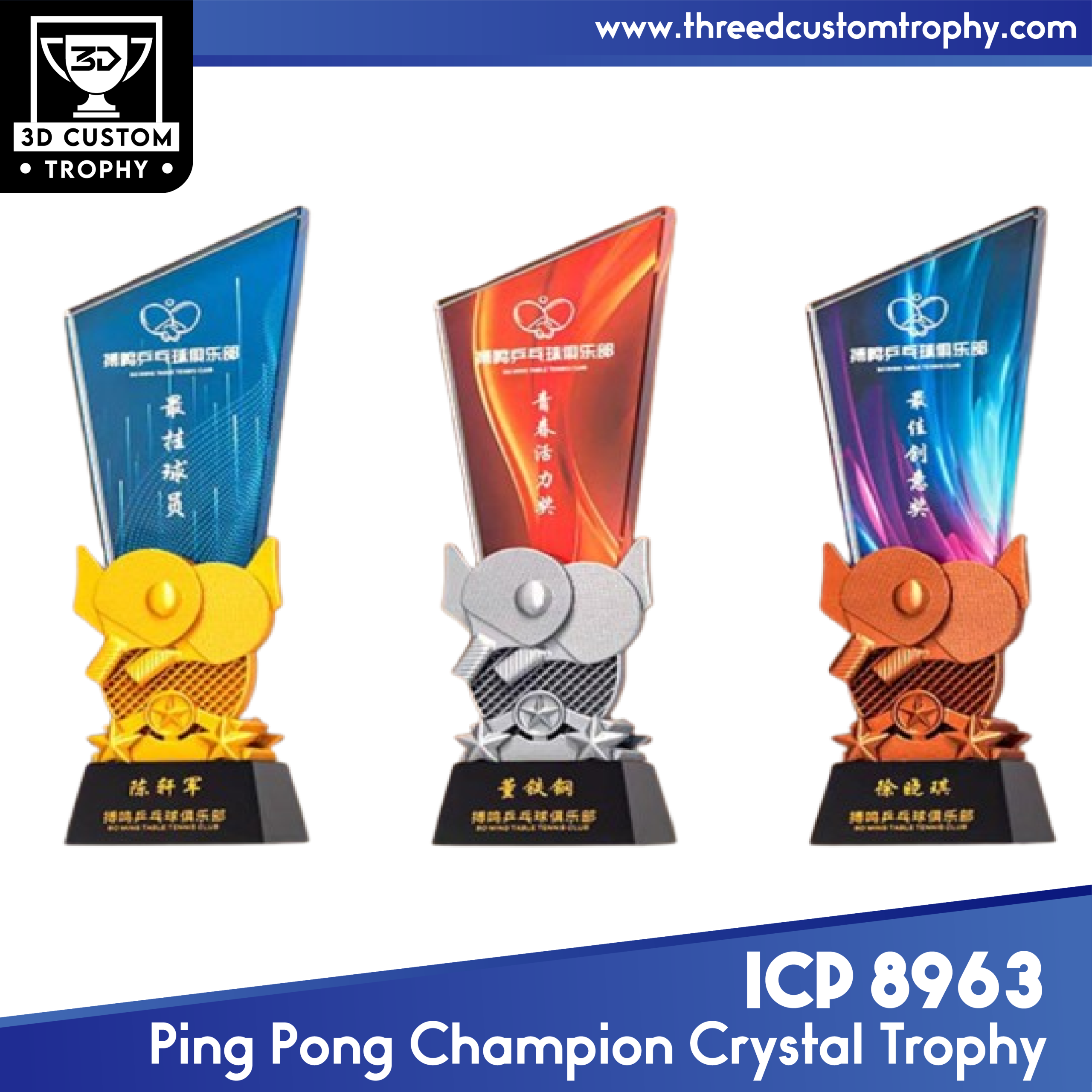 ICP 8963 Ping Pong Champion Crystal Trophy